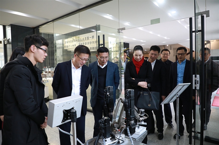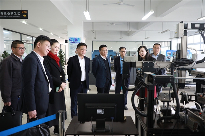 林亦俊一行先后参观了我院电气电子工程系实训中心、温州鞋革行业科技创新公共服务平台、智能制造工程应用技术研究中心、技术研创大楼等技术研发平台。参观考察过程中,林亦俊一行深入了解了我院关于专业建设、实训基地、科技研发、人才培养等方面的情况介绍。