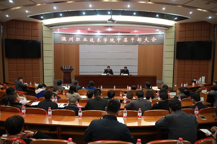 方益权在会上从“天时、地利、人和”三个方面阐述了温职院打造高水平职业院校的意义。他指出,学院正处于发展的重要时刻,要以更高远的历史站位,更宽广的国际视野,更深邃的战略眼光,牢牢地把握住新时代高等教育面临的机遇;全院教职员工要凝聚共识、增强本领、振作精神,拧成一股绳,以更优异的成绩,向新中国成立70周年献礼。