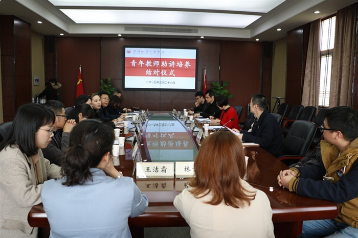 (人事处通讯员 张路伊) 为促进青年教师迅速适应岗位和正确定位,夯实教学基本功,更快胜任教育教学工作,同时发挥骨干教师的辐射带动作用,提升教师的整体素质,3月26日下午,我校在正德楼501会议室举行青年教师助讲培养结对仪式。学院党委委员张宏良、人事处处长苏跃飞、副处长武俊梅,相关青年教师及其指导教师参加了仪式。仪式由人事处处长苏跃飞主持。