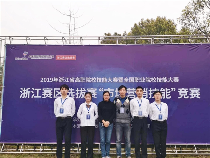 (工商系通讯员 沈群 邱桂贤) 3月28日至29日,2019年浙江省高职院校技能大赛暨全国职业院校技能大赛选拔赛“市场营销技能”竞赛在浙江国际海运职业技术学院举行。由我院工商管理系沈群、邱桂贤老师带队指导的市场营销1701班陈建斌、吴斌涛、徐建洪、胡梦琴四位同学荣获省团体一等奖,位列所有参赛队伍第一名,获得了进军国赛的资格。