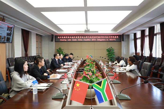 (国际处通讯员 陈康豪)4月15日上午,由温州职业技术学院、南非中国文化和国际教育交流中心和南非高教部食品饮料署共同建立的首个在华“南非温州职业技术学院培训中心”授牌仪式暨交流会在我院技术研创大楼三楼会议室成功举行。南非高教部食品饮料署主席马普勒·恩坎瓦瓦(Mapule Ncanywa)、署长诺库图拉·塞拉莫莱拉(Nokuthula Selamolela)、南非中国文化和国际教育交流中心代表、温州市外事办副主任周怀中、温州职业技术学院院长方益权及相关部门负责人出席仪式并作交流发言。活动由副院长何忠主持。