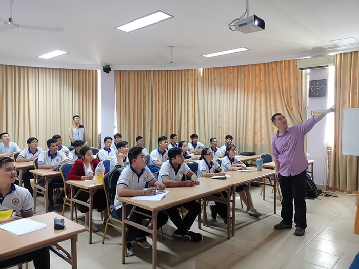 本网讯 4月22日14点(北京时间15点)国家技术培训学院行政会议室,一阵阵整齐的汉语拼音朗读声不时传出,这是我院柬埔寨分校开课的第一声。在结束了柬埔寨祥和美好的新年假期之后,当地各高校纷纷迎来开学季。国家技术行政学院电气工程专业(Electrical Engineering)16A班50名同学,衣着统一校服开始他们新学期的第一课——刘小方副教授的《初级汉语》课程。