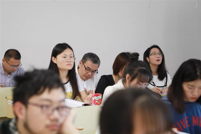 每个月,在温职院都会有一场学校党政领导“变身记”上演,这是学院组织的一项党政领导“同学日”思政主题活动。5月30日,学院纪委书记徐利群走进了建筑设计1802班听课,并与学生同堂听课、同桌进餐、同舍座谈、同会交流,同拍合照,与同学们做了一天“同学”。