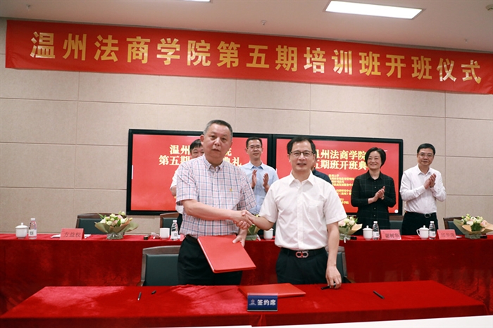 本网讯 为积极响应市委市政府优化营商环境,助力“两个健康”重点工作,5月30日,温州法商学院(以下简称“法商学院”)在温州大学举办第五期培训班开班仪式。温州市人民政府副市长苗伟伦出席并讲话。温州市市场监管局局长邱华萍,温州大学党委书记谢树华、校长赵敏,我院院长方益权,北京德恒(温州)律师事务所主任金疆等领导参加了开班仪式。