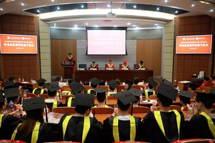 随后,44名获得学士学位的本科毕业生身着学士服、头戴学士帽,依次走上主席台接受拨穗礼,并领取学士学位证书。在场的全体师生用掌声送去祝福,共同见证了这一激动人心的时刻。