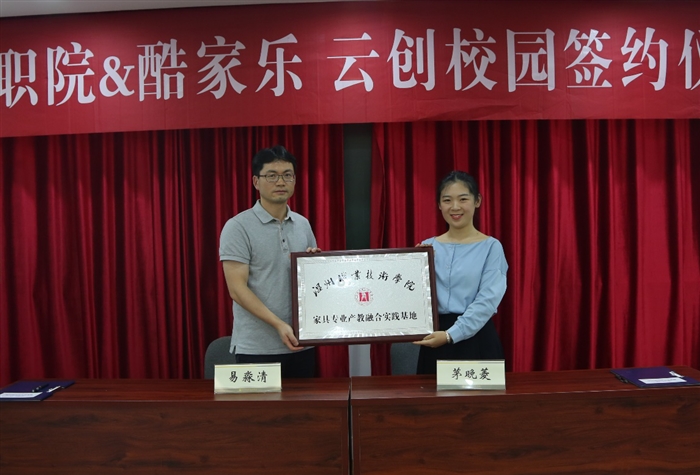 会上,我院与酷家乐签订了校企合作办学协议,建立了“家具专业产教融合实践基地”、“酷家乐云创校园实训基地”并授牌。仪式结束后,企业培训师给家具专业学生开展了酷家乐云端定制家居设计培训。