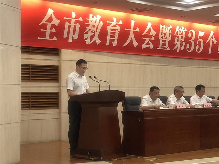 本网讯 “城市孕育教育,教育成就城市”。在9月10日下午市委市政府召开的全市教育大会暨第35个教师节庆祝大会上,我院党委书记王靖高发言开篇这样说到。