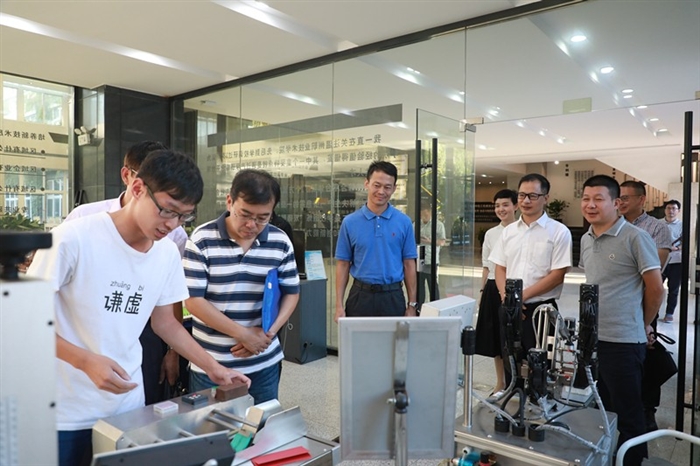 调研组一行参观了我院技术研创大楼、国家级众创空间、池慧杰名师工作室等,还对我院15位老师、50多名学生进行了问卷调研。随后双方于研创楼三楼会议室举行了座谈,围绕着职业教育与普通教育具有同等重要地位的话题而展开交流。