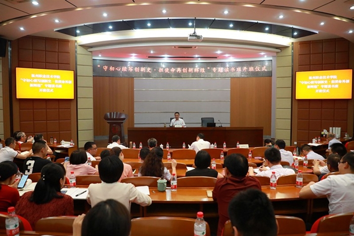本网讯 9月23日下午,我院在正德楼罗山厅举行“守初心续写创新史·担使命再创新辉煌”专题读书班开班仪式。学院党政领导班子成员,全体中层干部,各党总支书记,各党支部书记参加仪式。党委书记王靖高出席读书班开班式并作动员讲话,温州市委党校副校长蒋儒标在开班仪式后作首场专题报告。