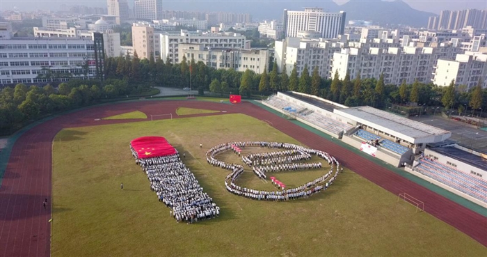 当天上午,在田径操场上,信息技术系全体师生用队列站成“70”及爱心字样,手上挥舞着国旗。“巨幅国旗传递爱国情活动开始!”随着党委副书记夏晓军宣布活动开始,现场响起由我院学生演唱录制的《我和我的祖国》的熟悉旋律,田径操场的草坪上,一面巨幅国旗展开,从学生们的头顶缓缓拂过。国旗下的同学们伸出双手依次传递,指尖的温度与心中的爱国之情澎湃交织。
