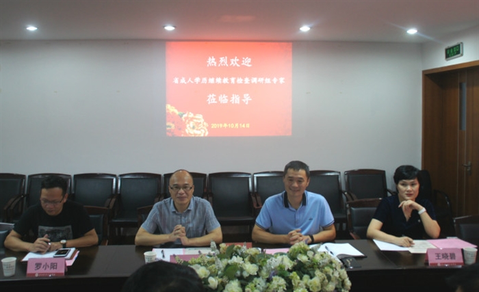 本网讯 (继续教育学院通讯员 曹佳佳)10月14日下午,浙江省教育厅职业教育与成人教育处副处长金仁康、省检查调研组专家周美秀莅临我院开展成人学历继续教育调研工作。温州市教育局职成教处处长薛昭等相关部门负责人陪同调研,并在我院继续教育学院行政楼二楼会议室召开调研会。学院党委委员蔡后界主持会议。
