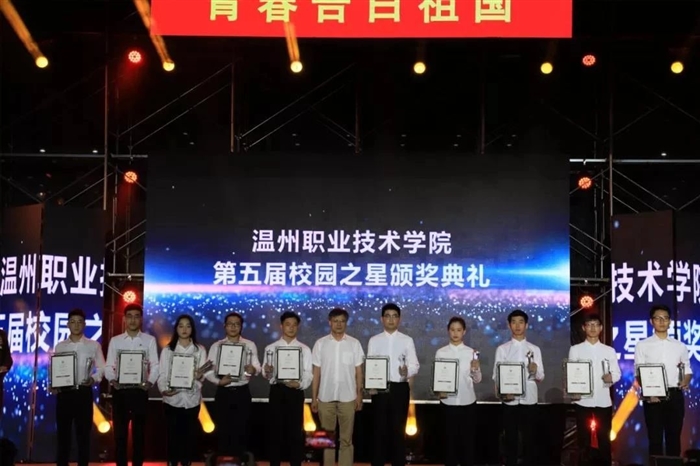晚会还举行温职院第五届“榜样温职 校园之星”的颁奖典礼,夏晓军为获奖学生颁奖,并合影留念。