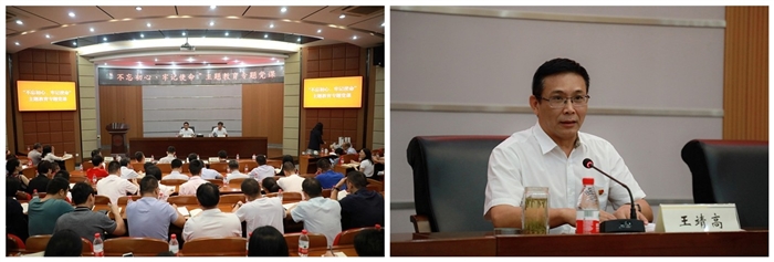 10月15日上午,我院党委书记王靖高以“牢记初心使命 矢志担当作为 奋力推进高水平学校建设”为主题,给党政领导班子成员、全体中层干部、各党总支书记、各党支部书记、师生党员代表上了一堂专题党课。王靖高指出,要学到深处,从党史和新中国史中感知初心、领悟使命;要查到细处,在对标对表检视问题中滋养初心、把握使命;要落到实处,在深化高职内涵建设中践行初心、勇担使命。王靖高要求,主题教育要落到实处,在深化高职内涵建设中践行初心、勇担使命。一是把主题教育的开展作为当前重要的政治任务。要把学习教育作为根本任务;把检视问题作为下一步工作重点;把师生满意度作为效果检验的标准;把推动学校发展作为主要目标。二是把坚持全面从严治党作为学校发展的根本保障。三是把双高任务的分解落实作为今后一个时期的中心工作。四是把升本作为今后主要努力方向。五是把体现职教类型特色的校园资源整合作为基础工作。六是要坚持稳中求进推进学校治理体系建设。