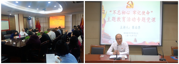 10月29日,党委委员、宣传部部长蔡后界分别到继续教育学院和后勤基建处党支部,作了题为“守初心、担使命,以自我革命精神推动工作改革创新”的专题党课。蔡后界从“守初心、担使命”的价值意蕴,如何“守初心、担使命”,以自我革命精神推进工作改革创新、切实守好初心担好使命等方面做了专题讲解。