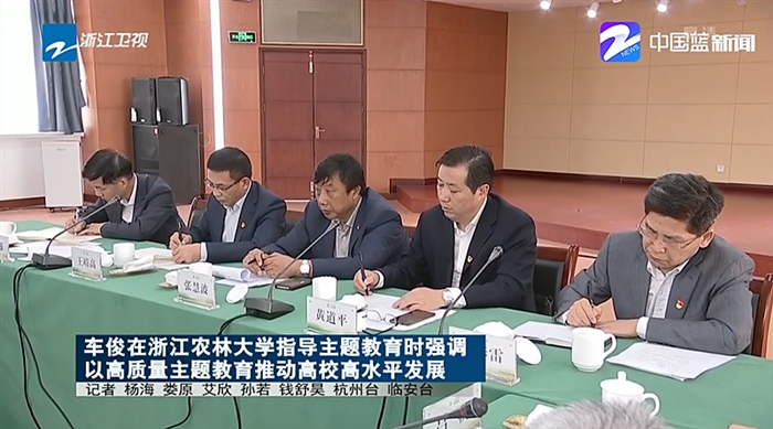 本网讯 11月5日,省委书记车俊在浙江农林大学调研指导“不忘初心、牢记使命”主题教育时,主持召开了座谈会,听取全省部分高校负责人和师生代表发言,就深入开展主题教育、深化教育改革等进行交流。车俊强调,全省高校要深入学习贯彻党的十九届四中全会精神和习近平总书记关于主题教育一系列重要论述精神,牢记育人初心、勇担时代使命,以高质量主题教育推动我省高校高水平发展,为全省经济社会发展提供有力的智力支撑。我院党委书记王靖高参加座谈会。