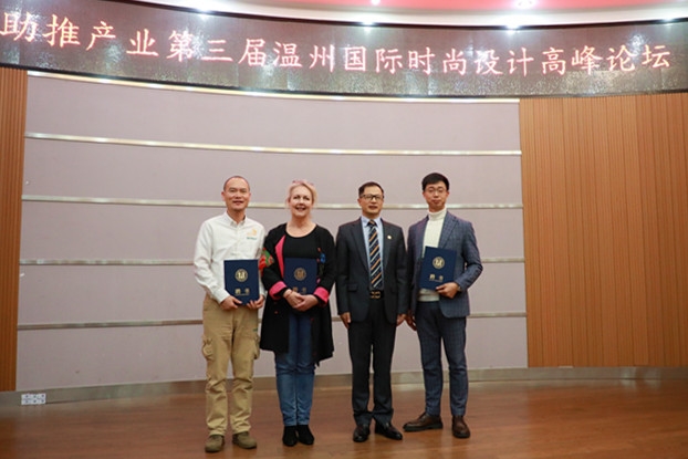 论坛现场,我院聘请Ulla Hentze、缪晓东、刘兴盛等三位设计大师在温州设计学院成立大师工作室,并举行了颁发聘书仪式。