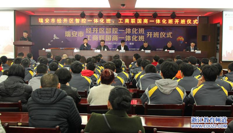浙江教育频道讯 12月11日上午,瑞安市职业中等专业教育集团学校举行“经开区智控一体化班”“工商联国商一体化班”开班仪式。