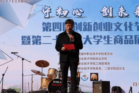 夏晓军在开幕式致辞中指出,大学生商品展销会是温职院传统的校园文化活动,在“大众创业 万众创新”的热潮中,希望创业青年能做到励学敦行、奋力实现人生价值;锐意进取、积极探索创业模式;防范风险、牢固树立危机意识。