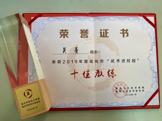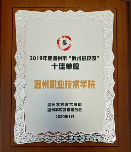 本网讯 (公共教学部通讯员 王品)1月5日下午,温州学校武术联盟在温州体育运动学校举行年会,会议表彰了2019年度十佳联盟单位和十佳教练员。通过一周的网络投票和专家评审,我院被评为“十佳先进联盟单位”,我院公共教学部吴蔓老师被评为“十佳教练员”。