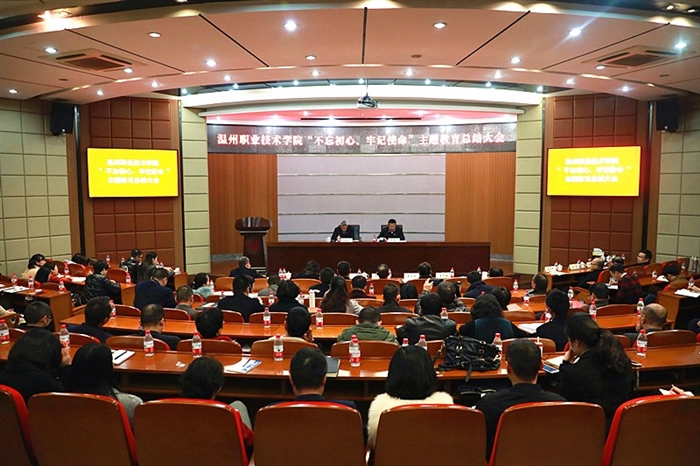 吴金良充分肯定了温州职业技术学院主题教育取得的丰硕成果。通过主题教育,理论武装不断加强;调研剖析深入有效;服务中心更加有力。他传达了党中央和省委主题教育总结大会的精神,并从四方面对巩固主题教育成果作了强调:一要坚持一以贯之抓学习,始终用习近平新时代中国特色社会主义思想为指导思想武装头脑;二要坚持一以贯之抓党建,切实把加强党对高校的全面领导和改进党的建设落到实处;三要坚持一以贯之抓整改,努力在推动高校治理体系和治理能力现代化中厚植优势;四要坚持一以贯之抓发展,真正在深化内涵发展中推动高教强省战略。