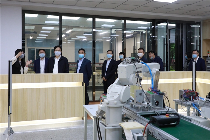 胡旭阳一行参观走访了学校校园和设创学院、电气系和机械系实训基地等。在调研走访过程中,学校领导介绍了学校基本情况、办学特色以及学校在人才培养、服务地方经济社会发展方面取得的成效。胡旭阳对学校以扎根区域为特色的办学实力,“与国家发展同频、与区域产业对接、与民营经济互动、与行业企业共赢、与国际顶尖接轨”的办学定位,以及坚持“围绕中心抓党建,抓好党建促发展”,将党建工作与学校事业发展同步提升、同步发展的办学思路给予高度赞赏。