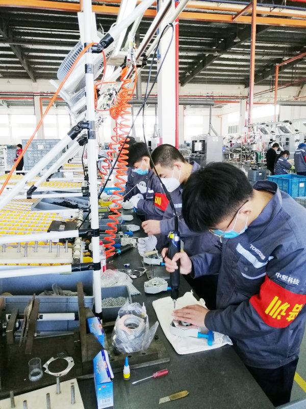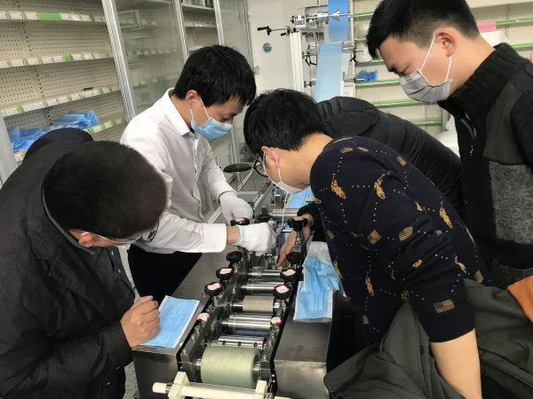 温州职业技术学院机械系教师帮助企业修理口罩机。
