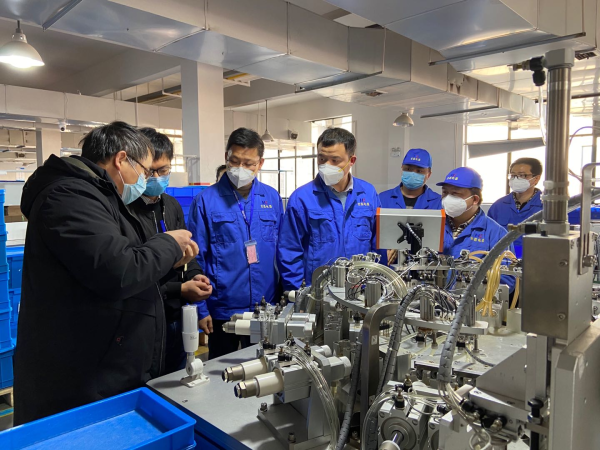 金华职业技术学院机电学院院长戴欣平教授带领团队在浙江宏昌电器科技有限公司解决复工技术问题。