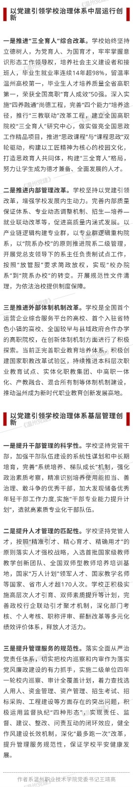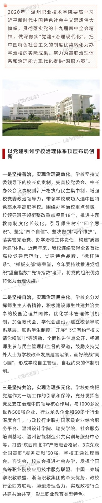 温州组工:温州职业技术学院以党建为引领 推进高校治理体系和治理能力现代化