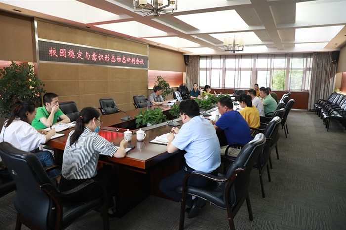 本网讯 6月8日,学校在正德楼三楼会议室召开校园稳定与意识形态领域动态研判会议。党委副书记夏晓军,党院办、宣传部、人事处、教务处、学生处、招生就业处、后勤基建处、保卫处、公共教学部、继续教育学院、瑞安学院等部门负责人参加会议。会议由夏晓军主持。