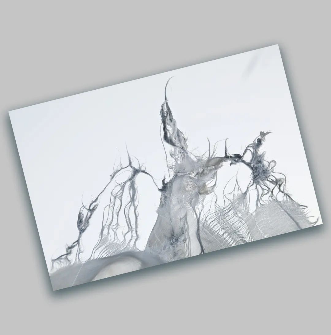 我们把摄影、绘画归于视觉艺术,然而无论道还是佛,都认为感官具有欺骗性和虚幻性。形为无,色乃空,因而对视觉的真性须持怀疑和警惕。而超越形色之相,直抵生命真性,是谓“无相法门”。荆浩说绘画须“度物象而取其真”这个“度”有两种理解:一是审度,即审视物象而抓取最生动的形态加以表现;二是超越,即不拘泥于物象的表面相似,表现世界的“元真气象”展示“物象之原”。《高原舞者》舍弃舞者实相,而抓住风的动感瞬间,由此照射出“高原”旷远寥廓的宇宙气象和“舞者”自由率真地海泄于天地自然的生命韵律,于上述两者兼而融之。画面单纯而丰富,热烈而雅致,于无意的瞬间达成永恒。金农在一则画跋中发可:“茫茫宇宙,何处投人?”在无限的宇宙时空中,哪里是人的安身立命之处?这突兀一问,正如高更在他生命的净土塔希提岛上创作《我们从哪来?我们是谁?我们将向何方?》这幅油画中的关切,是对生命存在价值和意义的追寻。《高原舞者》从天人关系上阐释了这一问题的答案在天人合一的意象境界中,具体之物的“幡”,是麻是布,或别的什么,并不重要。重要的是作者在托物言志、即景抒情。故景与情合,生机妙化。这大概也是作者称这些布麻乱丝为“经幡”和“舞者”的理由,因为它们正是妙合了此情此景的天机。