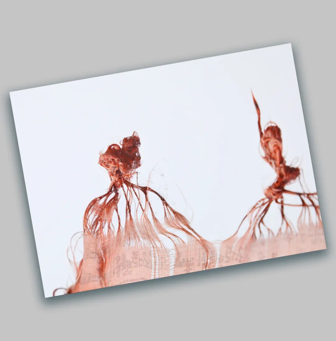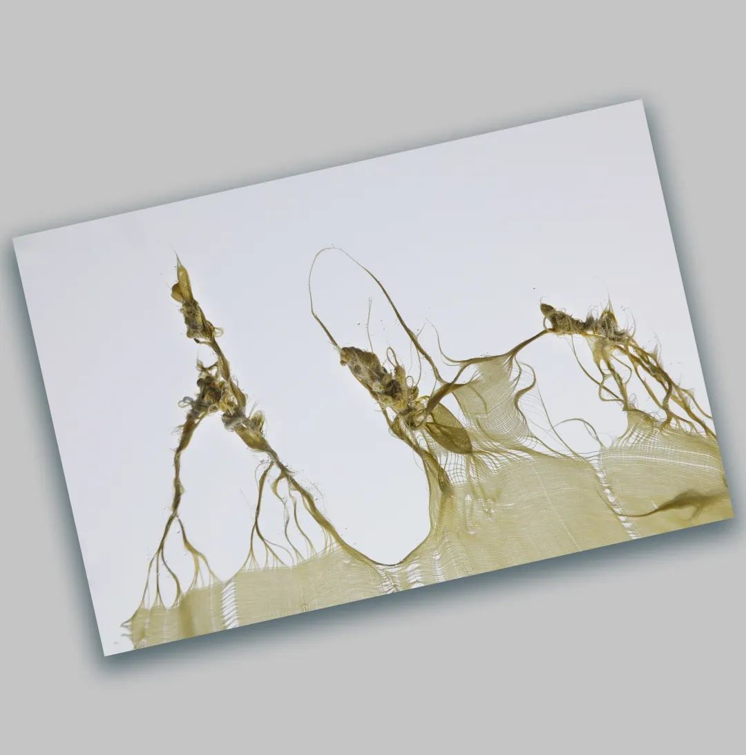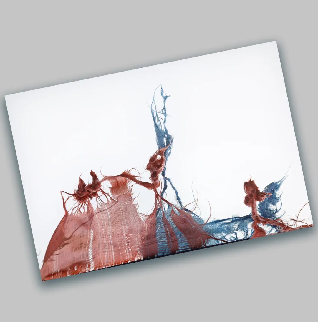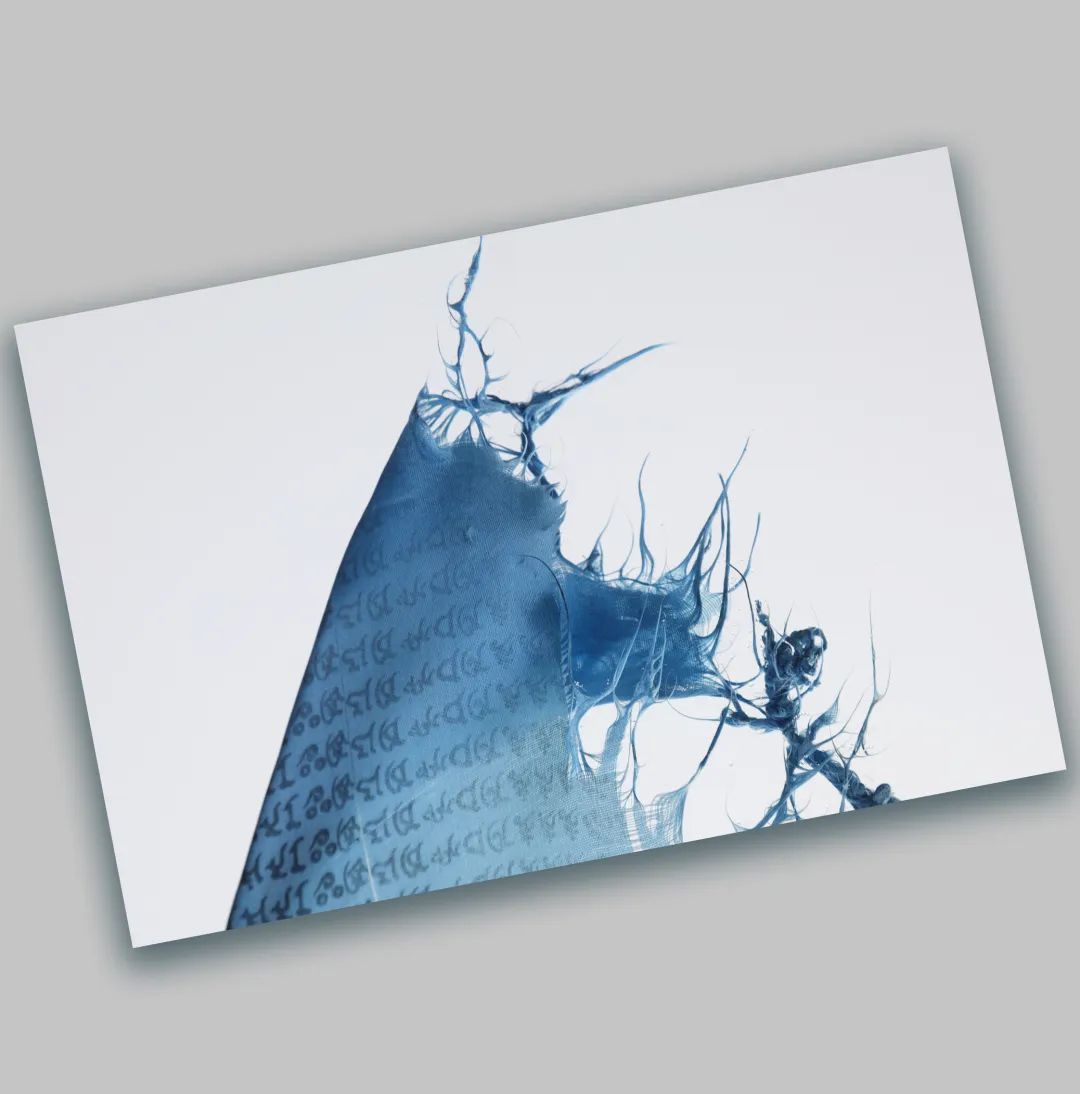 叶君奋新作《高原舞者》,让人想象蓝天白云村托下曼妙的身姿、绚丽的服饰,乃至脸上淳朴而不乏些许野性的高原红。然展卷一看,既无高原,亦无舞者,而是在风中飞的麻丝布片,作者称为“经幡”——那种在青藏高原上随着转轮和诵经声飖动的彩旗这让我想起一一年前与作者探讨禅道一事。此作似乎应合了六祖慧能“不是风动,不是动,仁者心动”的禅机妙理。无高原及舞者之实体相,但在作者眼里,这些风中的“幡动”与现实世界舞者的舞动并无二致。究其因缘它们都出自作者心动,归于作者的真性。当然,我们惊叹地发现,有些画面中的造型像极了舞女的身形姿势,尽态极妍,栩如生,但我认为,仅以象形解读这些作品,是远远不够的。