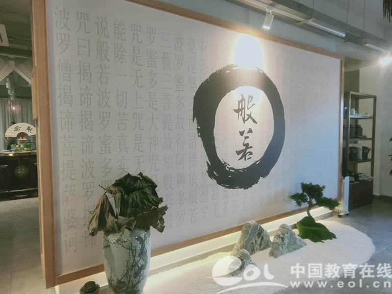 来自黄山学院建筑学专业的刘耀恒团队改造了“般若茶院”,帮助商户进行空间改造和市场推广,突出了良渚玉器文化和展示,对空间内部进行了优化。