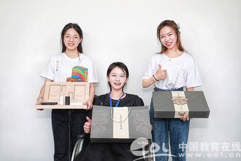 温州职业技术学院的张瀚文,王文静,韩乐瑶团队,将良渚玉器文化融入象棋造型、七巧板融入棋子组合、良渚纹样融入包装设计,做出了可玩可赏可收藏的高端文创纪念品——“良渚印象”中国象棋,还在里面设计了创新交互产品——AI卡片,扫描每张卡片背后的二维码都可以观看对应良渚文物的视频介绍,使人了解每种良渚文物背后的文化和故事。