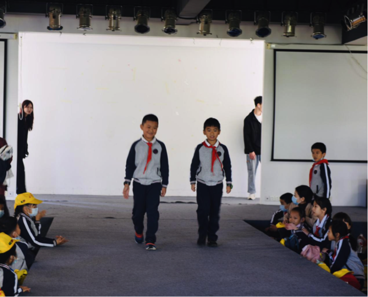 在服装表演劳动实践基地,服装表演专业的志愿者讲解专业模特的基本素质,并展示专业的模特秀。小朋友们看完后迫不及待地化身“小模特”,在T台上轮番上演“模仿秀”,活动现场回荡着孩子们的欢声笑语。