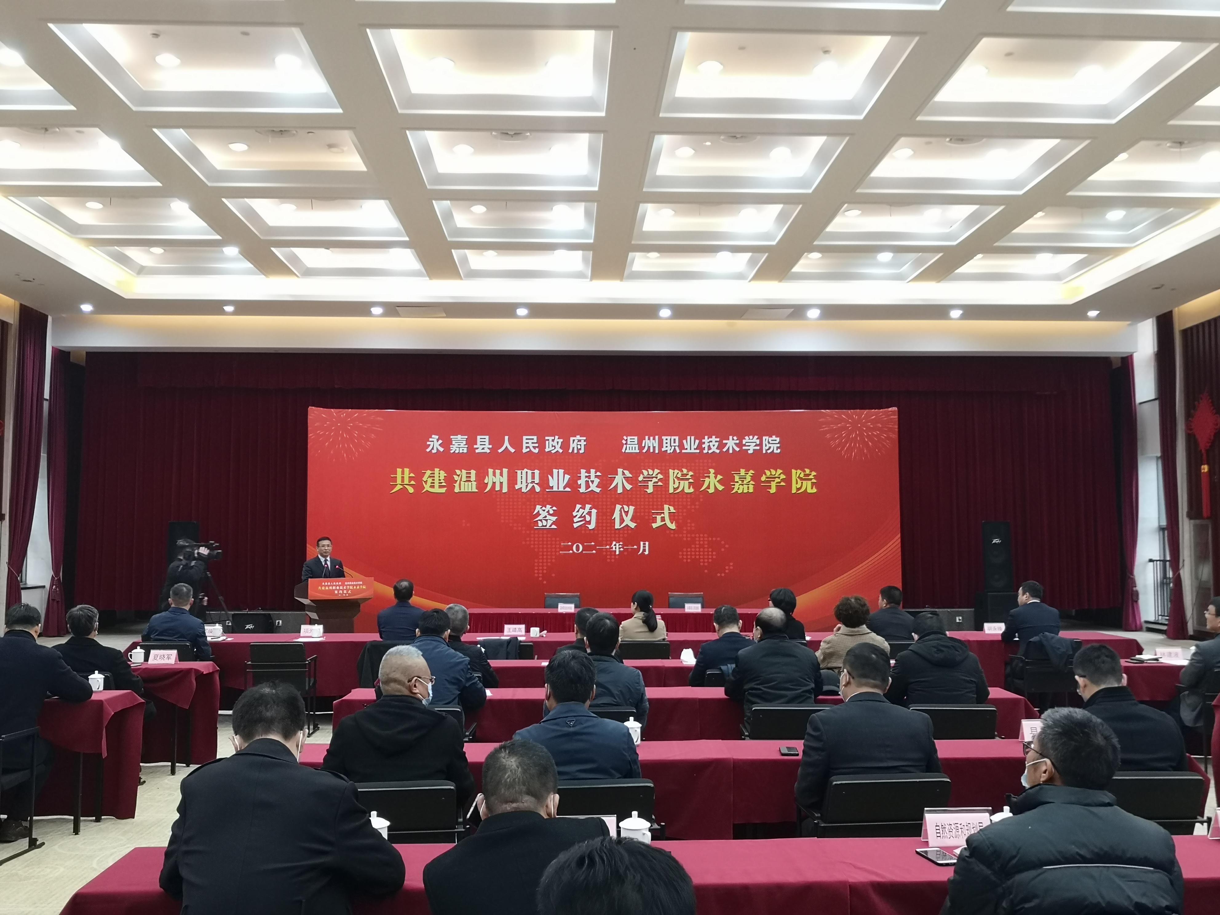 1月20日下午,永嘉县人民政府与温州职业技术学院共建温州职业技术学院永嘉学院签约仪式在永嘉举行。此举意味着,永嘉开启了建设第一所大学的新时代,永嘉人有了“家门口”的大学。