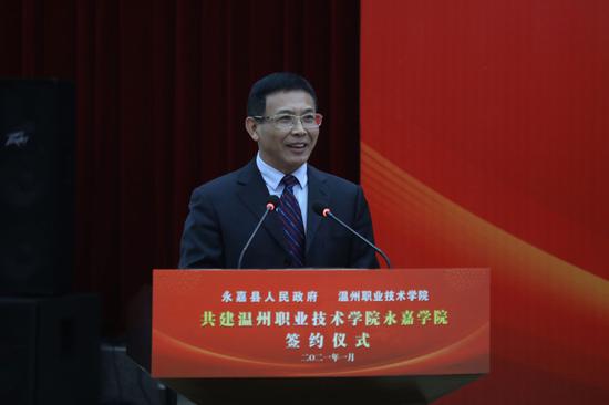 中新网浙江新闻1月22日电 (谢盼盼 王题题)开校地良性互动、服务区域经济发展的全新篇章,日前,由温州职业技术学院(下称“温职院”)与温州永嘉县人民政府合作共建的温州职业技术学院永嘉学院签约仪式在浙江温州举行。