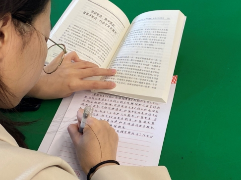 “以史为鉴,继往开来,在这一伟大历史征程中,无数共产党人前仆后继、英勇战斗、开拓前行,锻造了无数红色精神、红色基因、红色传统。我们年轻一代要以行动传承红色基因,发扬光荣传统,始终牢记伟大的革命精神,不断进行自我革命,努力在坚持和发展中国特色社会主义伟大进程中创造无愧于时代、无愧于人民、无愧于先辈的业绩。”小组代表夏同学说。最后,全体同学手抄党史,在抄写党史时学习历史、领悟历史。