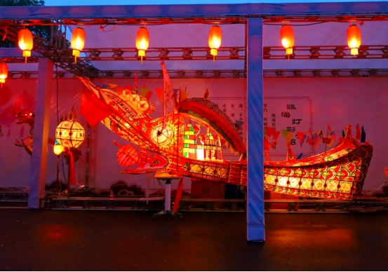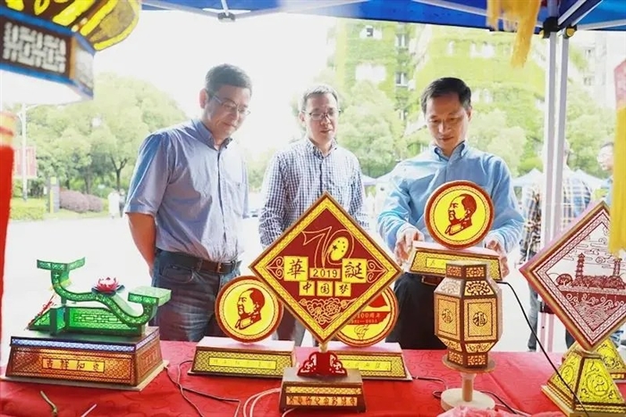 瓯塑、瓯绣、剪纸、彩石镶嵌……活 动现场邀请非遗大师展示温州非物质文化遗产,还精心布置了茶山百鸟灯、泽雅周岙挑灯、梧田大龙灯、岭头堂九龙灯等百盏美轮美奂的彩灯。瓯海春秋艺社的朋友们带来淡雅曼妙的周岙灯彩走秀表演,令人赞叹不已。高超精湛的手工技艺和独具特色的灯彩艺术,吸引了一大批群众驻足欣赏。