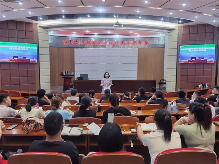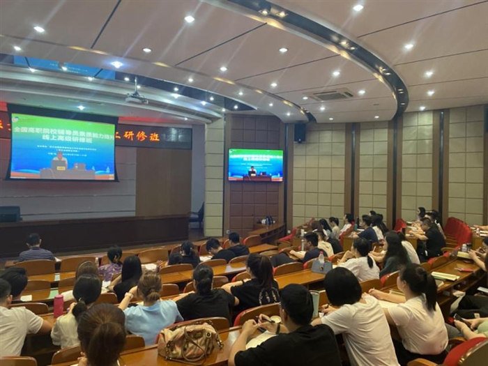 本网讯(学生处通讯员 朱丹霞)为深入学习习近平新时代中国特色社会主义思想,全面贯彻落实全国职业教育大会、全国高校思想政治工作会议精神,8月30日至31日,“全国高职院校辅导员素质能力提升线上高级研修班”培训顺利开展。我校学生处积极组织全体专兼职辅导员和部分班主任代表共70余人于罗山厅集中参与学习。