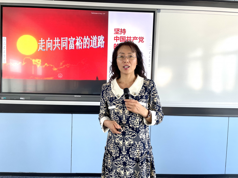 她巧妙地在课程中运用了时下热门的影视作品《山海情》,将剧中人物的命运发展与共同富裕的理论相结合,牢牢抓住了学生们的兴趣点,在和大家情感的相互激荡中实现价值传递,赢得了阵阵掌声。