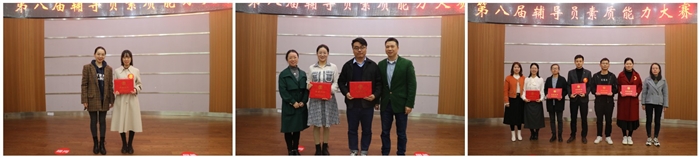 经过激烈角逐,最终瑞安学院辅导员芦洁坪荣获一等奖;学生处辅导员李雪、永嘉学院学工办主任丁聪荣获二等奖;设计创意学院辅导员王剑辉、学生处公寓科科长张杰等5位辅导员荣获三等奖。