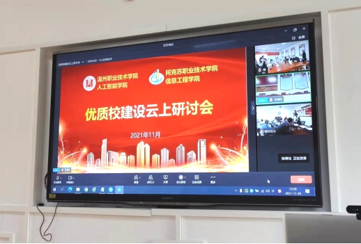 上月,双方举行优质校建设云上研讨会,就阿职院信息工程学院专业人才培养方案及课程建设情况深入研讨,温职院人工智能学院教师积极建言献策,提出宝贵意见。研讨会对阿职院优质校建设项目、“创新多元人才培养模式”项目和“建设专业群模块化课程”项目建设起到了积极推动作用。