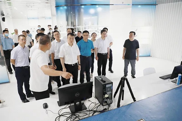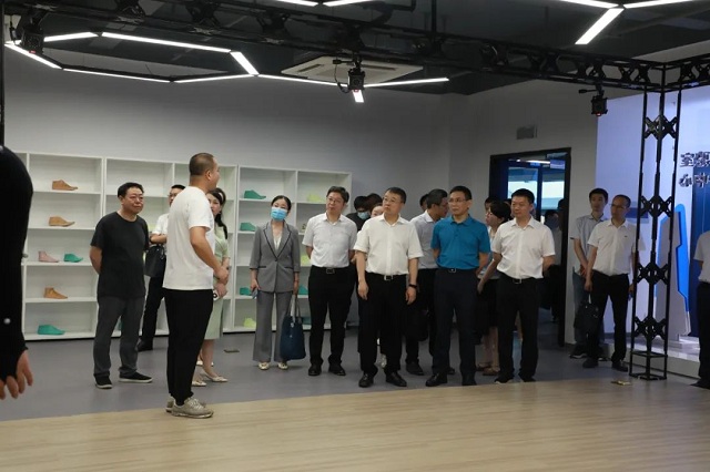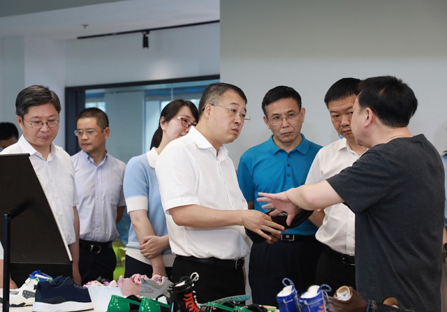 王振勇一行实地参观了设计学院“国家万人”领军人才工作室、中国足踝健康装备研究中心、运动人体科学实验室、服装数智定制空间等基地,认真听取了相关负责人关于设计学院建设、搬迁、启用情况及鞋服专业基本情况、人才培养、科技研发、产教融合等方面的介绍。他对设计学院建设“百日攻坚”取得的成效给予了高度赞赏,对鞋服专业通过立地式研发取得先进技术突破表示充分肯定。
