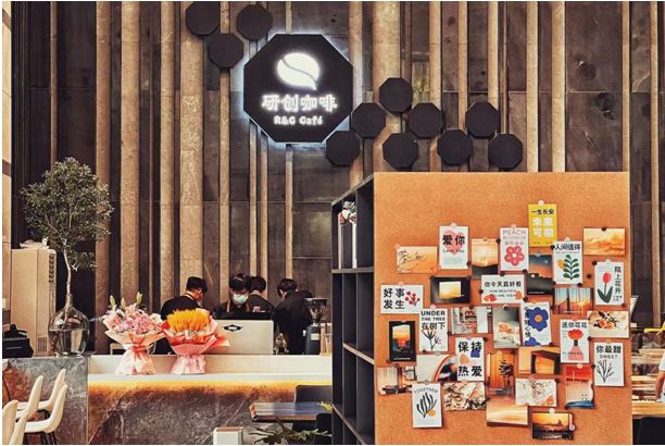 该咖啡馆坐落于学校技术研创大楼一楼,取名研创咖啡(R&C Café)一因选址,秉承教学研究、创新育人理念;二则意为研磨咖啡,研磨时光,杯杯有创意、时时有创新。咖啡馆致力于为师生打造充满无限可能的休闲社交空间、拍照打卡空间,提供读书会、插花论坛、咖啡论坛等内容输出平台。