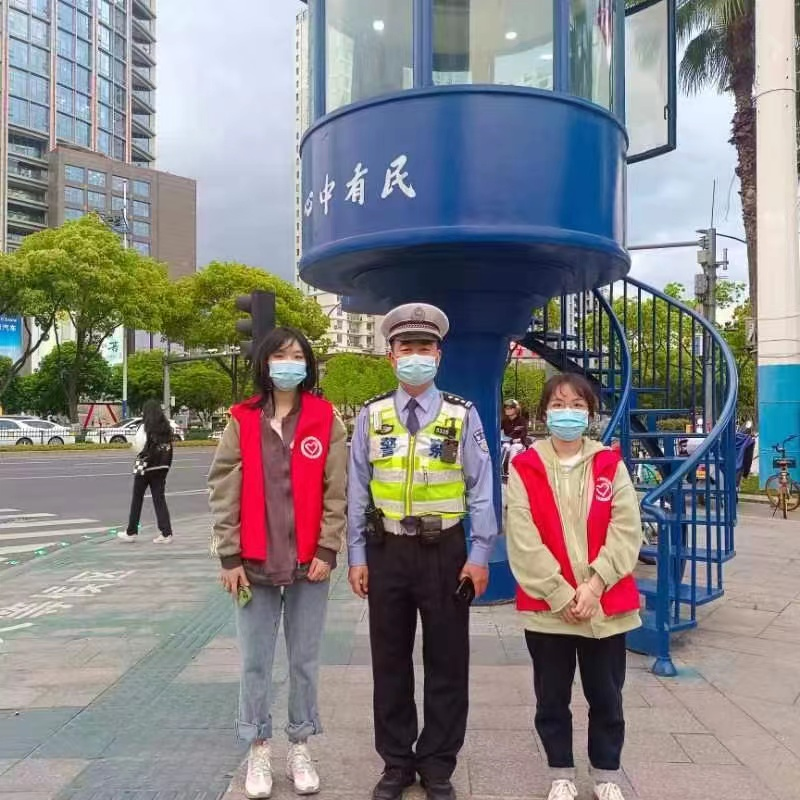 “您好!骑电瓶车上路请规范佩戴头盔。”“等一等再走,现在是红灯,不能过马路。”在温州市鹿城区蒲鞋市街道早晚高峰时段,每天各个十字路口都会有一批大学生志愿者,手拿旗子、身穿红马甲,协助交警进行交通疏导,助力市民安全出行。他们是温州职业技术学院鹿城学院的学生志愿者。