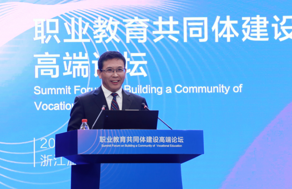 现场,教育部职业教育与成人教育司副司长林宇作主旨报告。温州职业技术学院党委书记王靖高,国家职业教育咨询委员会主任、国家“双高计划”建设咨询委员会主任委员、中山大学原校长黄达人,中国职业技术教育学会常务理事、全国高职高专校长联席会议顾问、上海市职业教育协会会长马树超三位学者先后作专家报告。