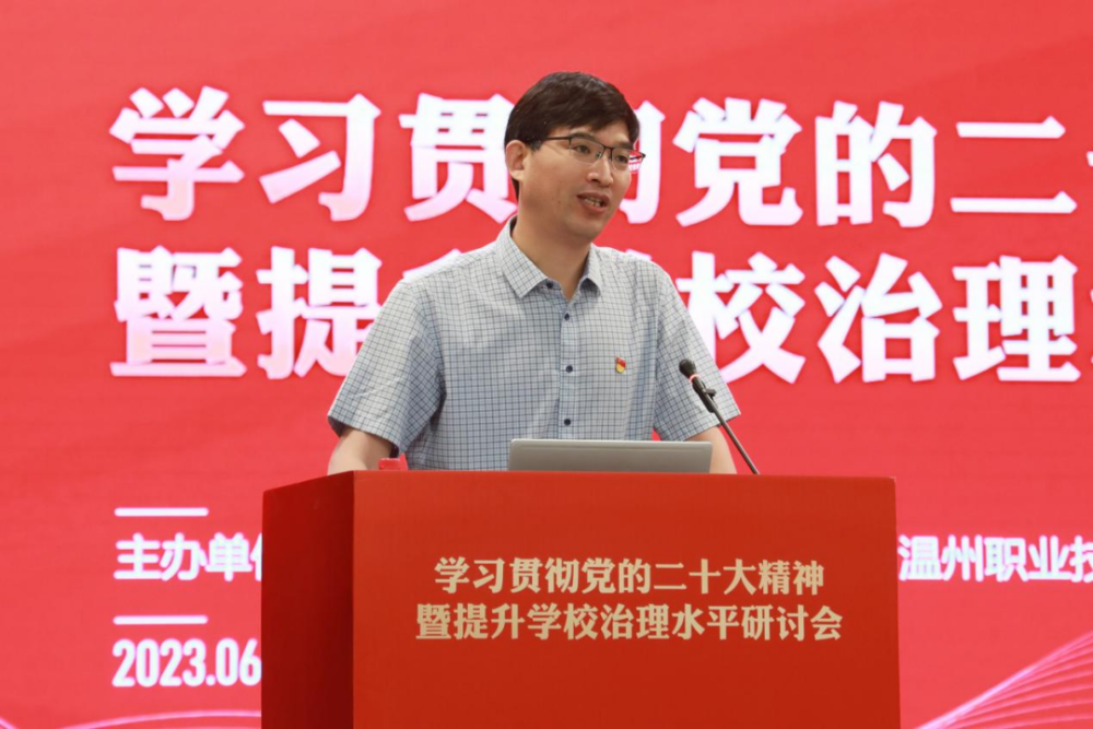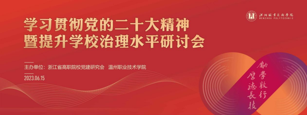高职院校如何实现治理现代化?治理现代化如何推动高职教育高质量发展?6月15日,学习贯彻党的二十大精神暨提升学校治理水平研讨会在温州职业技术学院召开。大会以“完善学校治理体系,推进治理现代化”为主题,由浙江省高职院校党建研究会和温州职业技术学院主办,共商职业教育治理现代化话题,共谋职业教育高质量发展。