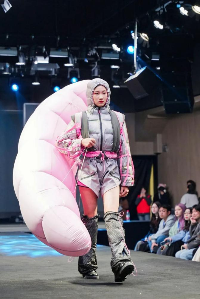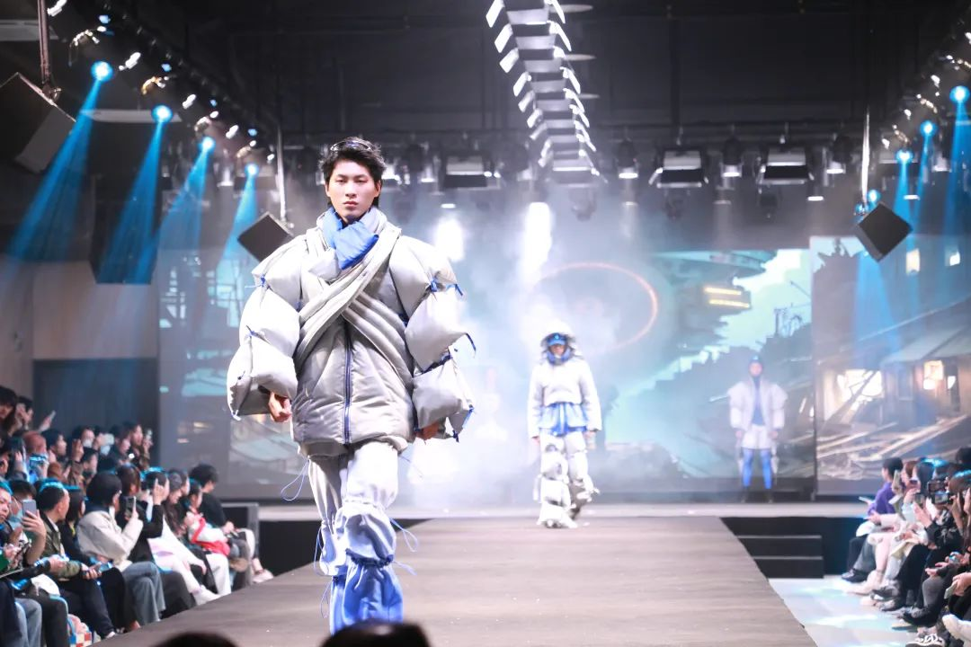 近日,浙江省第七届大学生服装服饰创意设计大赛决赛在温州职业技术学院(简称“温职院”)闭幕。闭幕式上,由该校设计学院师生组成的模特队向大家展示获奖作品,呈现了一场流光溢彩、精彩绝伦的“设计助推产业”时尚大秀,展示了年轻学子对服装设计更多可能性的探寻与追求,更体现了服装产业跨界融合、数字赋能的发展新趋势。