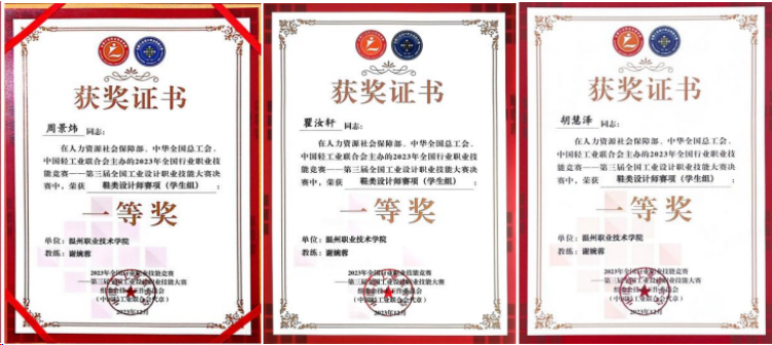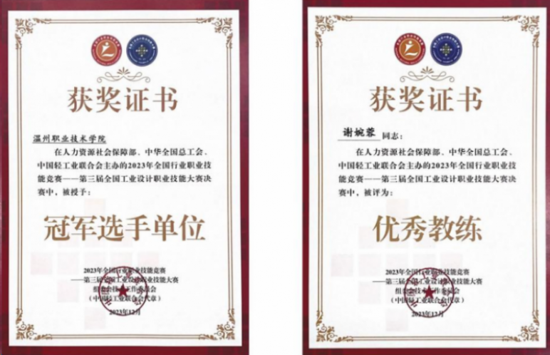 12月6日,第三届全国工业设计职业技能大赛在四川宜宾落幕。温州职业技术学院设计学院鞋类设计与工艺专业学生周景炜、瞿汝轩、胡慧泽在谢婉蓉、李再冉、史丽侠三位老师的指导下,斩获鞋类设计师赛项(学生组)一等奖。指导老师谢婉蓉获“优秀教练”称号,温州职业技术学院被授予“冠军选手单位”称号,成为浙江省唯一一所在这次大赛中荣获一等奖的高校。