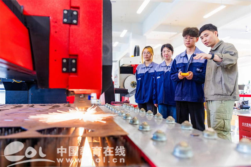 而在另一边,浙江工贸职业技术学院光电制造与应用技术专业的学生,聚精会神地在老师的指导下操作激光切割设备,每一次精准切割带来的耀眼光束,都一定程度展现了职业教育内涵和魅力。